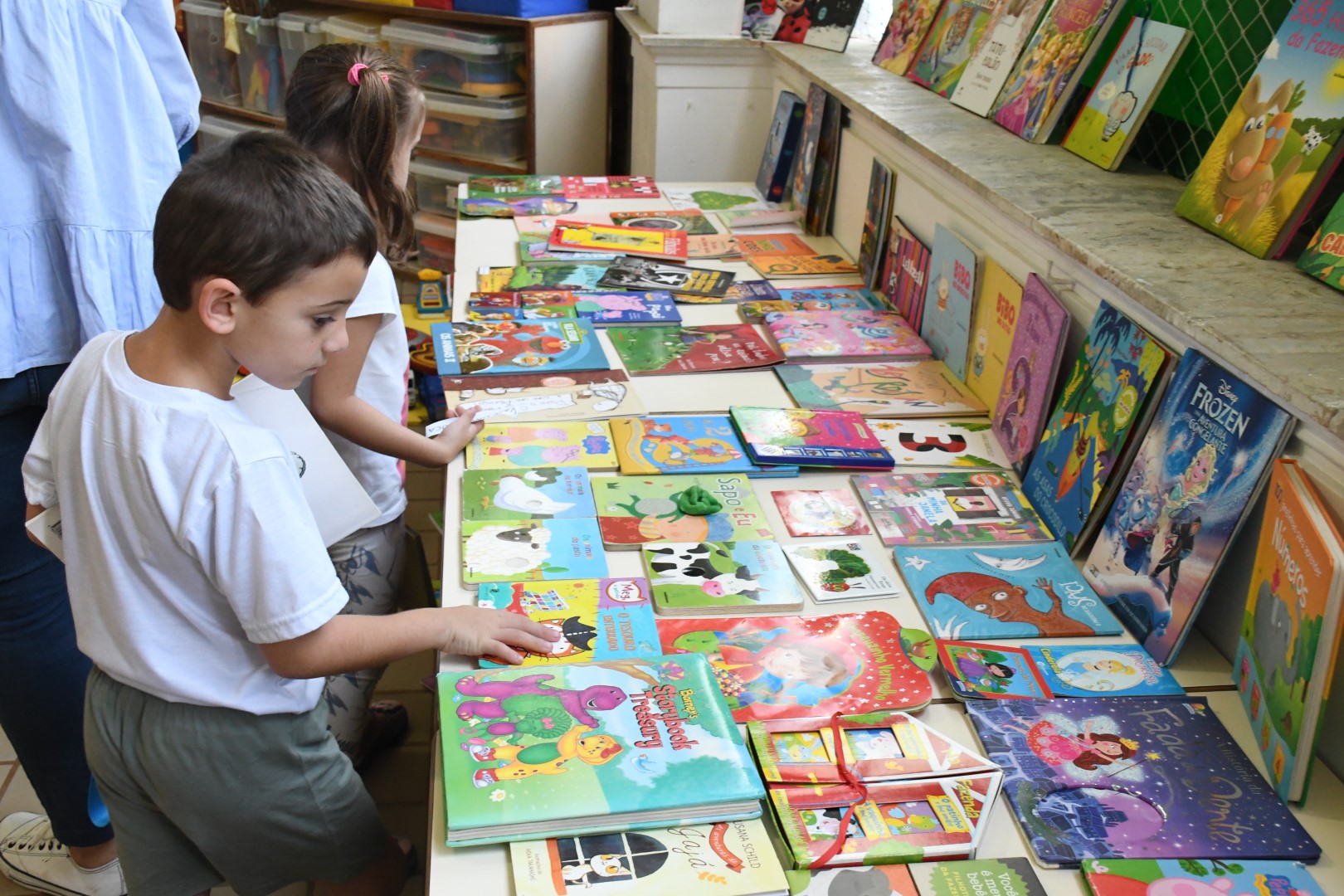 Para reforçar o consumo consciente e a reutilização, as turmas da Pré-Escola II participaram de um bazar. As crianças trouxeram de casa livros e brinquedos para trocar umas com as outras. Parte dessa seleção foi também encaminhada à Creche Mundo Infantil, da comunidade Santa Marta.