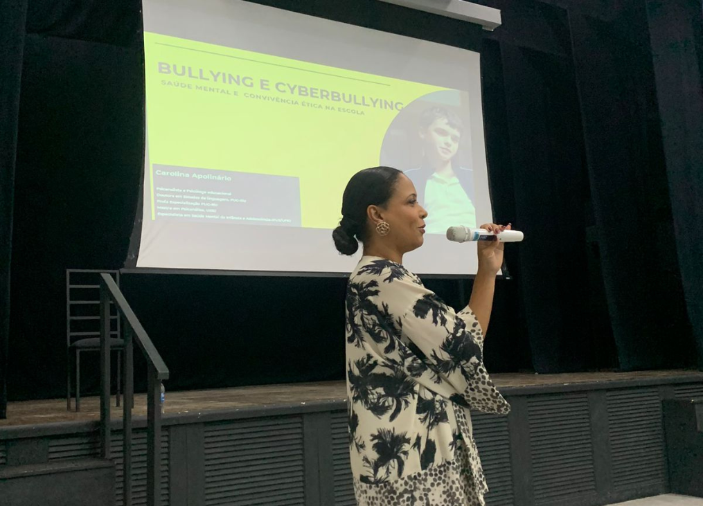 O encontro contou com a palestra da professora Carolina Apolinário, doutora em Estudos da Linguagem com ênfase em Psicologia educacional pela PUC-Rio, mestre em Psicanálise pela UERJ, especialista em Saúde Mental da Infância e Adolescência pelo IPUB/UFRJ, especialista em Orientação Profissional Sistêmica pelo CEFAI-RJ e coautora do livro Infâncias Pandêmicas – Escola e Saúde Mental (Editora Pirilampo, 2022). Além disso, Carolina atua em consultório há 23 anos e como psicóloga educacional há 15 anos, com experiência em todas as faixas etárias.