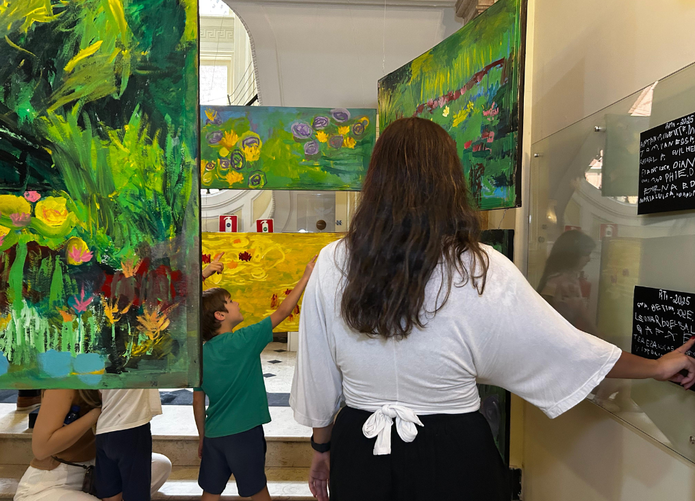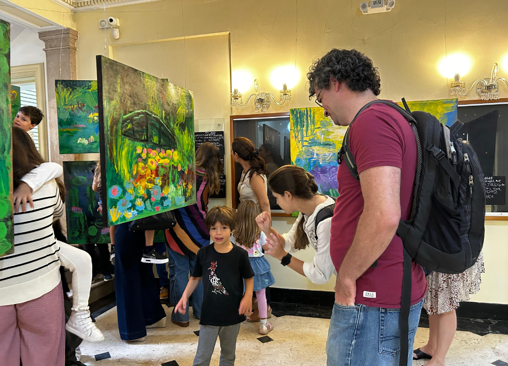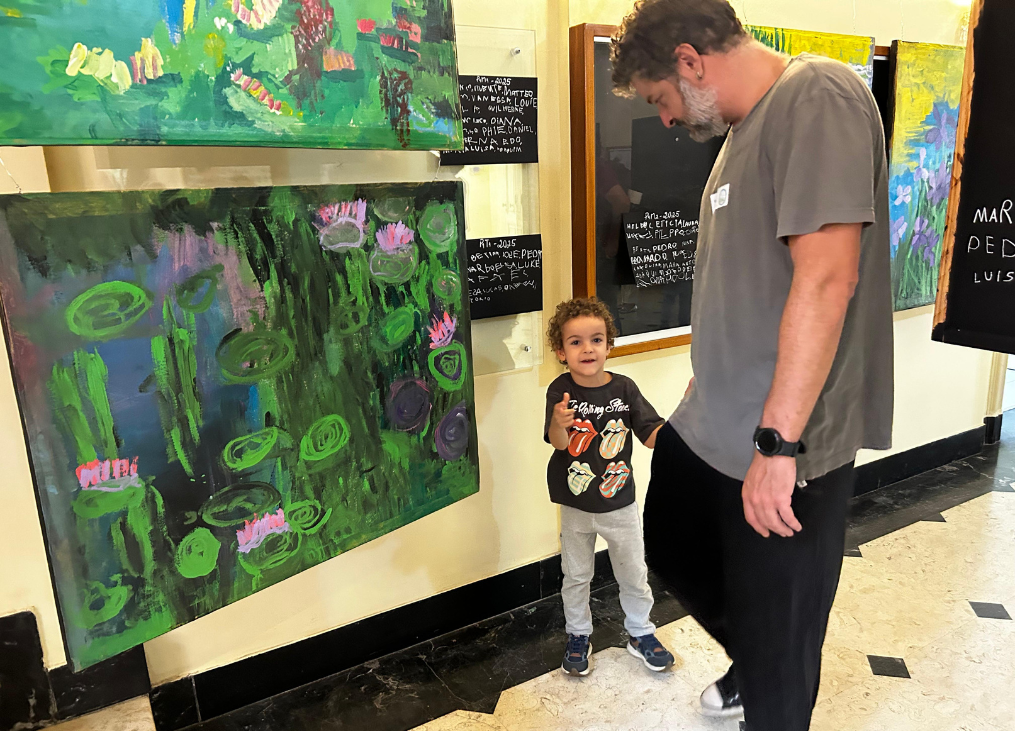 Após esse período de experimentação, elas prepararam uma exposição com suas próprias produções para apresentar para os seus responsáveis e junto com ao professor de artes, explicaram como o Monet utilizava a iluminação, os tipos de flores que o inspiravam e os detalhes que observaram em suas pinturas.