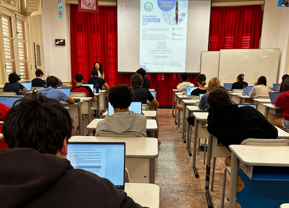Os alunos do Ensino Médio, do ramo brasileiro, participaram de uma simulação do exame SAT, etapa importante para aqueles que desejam ingressar em universidades internacionais.