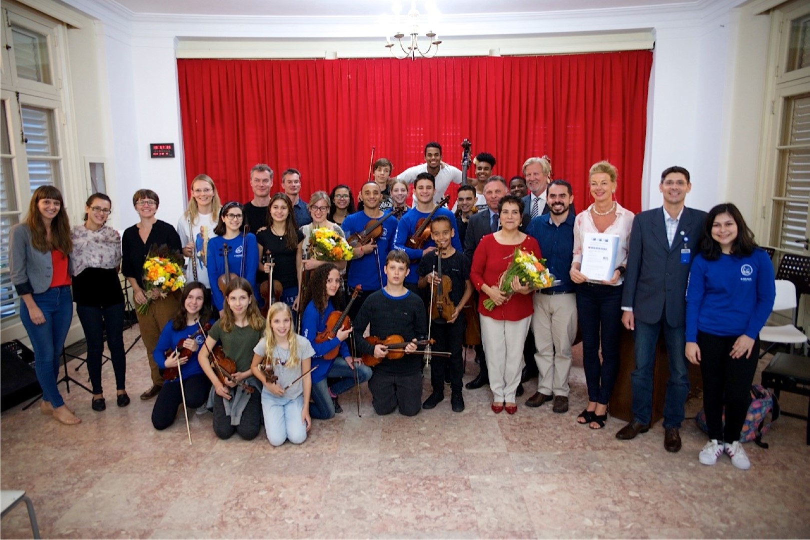 Para celebrar a conquista, a Orquestra realizou uma apresentação nesta terça-feira (29/05) para o presidente da Câmara de Comércio e Indústria Brasil-Alemanha do Rio de Janeiro (AHK), Gerhard Haase, o diretor executivo da AHK, Hanno Erwes, e a representante do Consulado Geral da Alemanha Rio de Janeiro, Rayanne Azevedo.