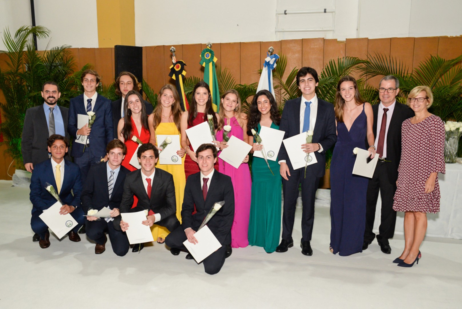 71 alunos das turmas 12 celebraram a conclusão de suas trajetórias na Escola Alemã Corcovado em 2019. A cerimônia de formatura do Ensino Médio aconteceu no dia 11 de dezembro e teve início com o tradicional brinde e homenagem às mães dos alunos na Sala de Provas. Em seguida, os formandos, familiares e demais convidados se dirigiram ao ginásio da Escola, onde o presidente da Associação Escolar e Beneficente Corcovado (AEBC) Gerwin Osenjak, o diretor brasileiro Paulo Carvalho e o diretor alemão interino Jens Middelhauve apresentaram seus discursos. Palavras de incentivo, convite à reflexão sobre o papel de cada indivíduo como agente de transformação na sociedade, e cumprimentos pelo empenho no encerramento do ciclo escolar deram o tom da solenidade.